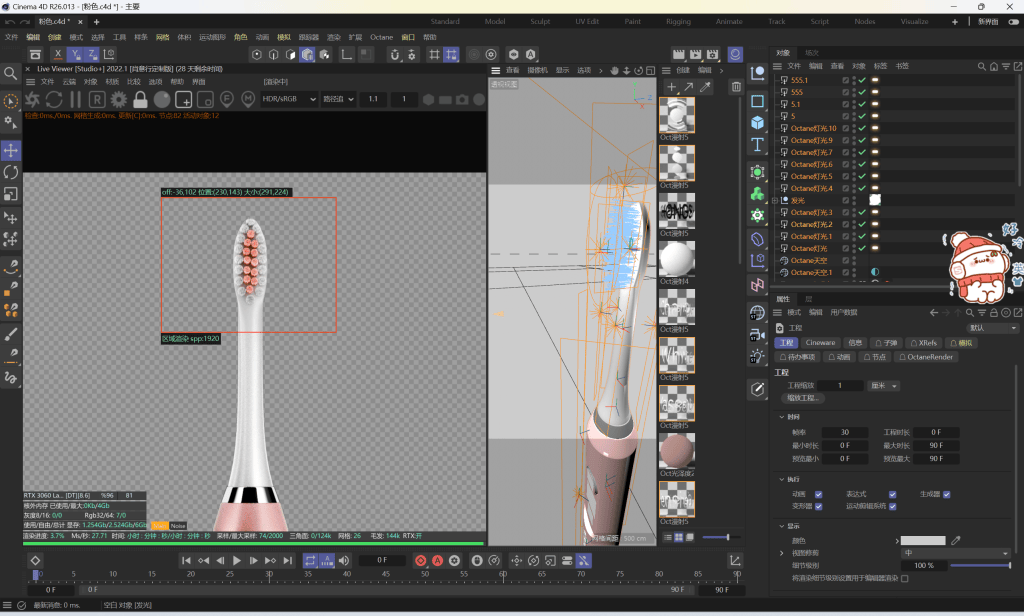 C4D OCTAEN 电动牙刷建模渲染